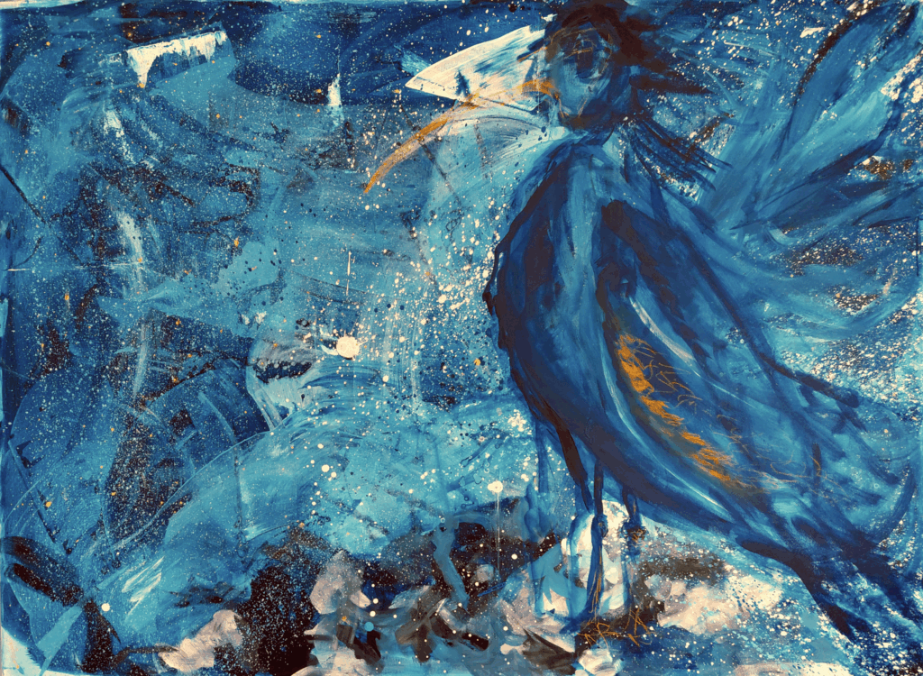 Acryl mit Tusche und Pastell auf Leinwand. 120x160cm